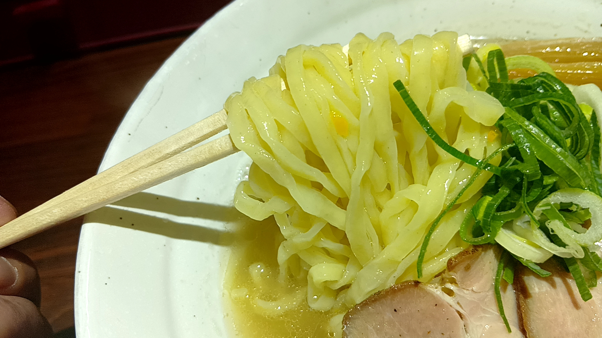 気まぐれ限定 柚子がほんのり香る鶏塩らーめん(手揉み平打ち縮れ麺)1000円