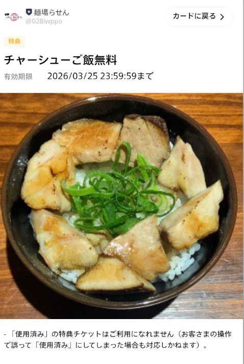 ②LINEウォレット50ポイント燻製チャーシューご飯