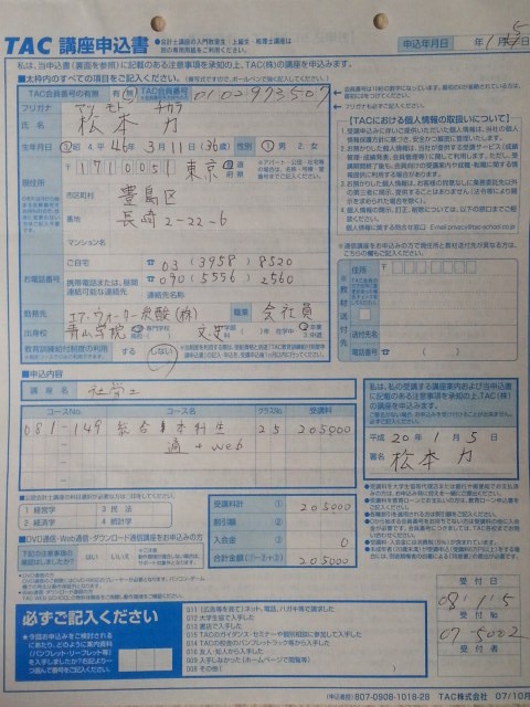 【アルバム】平均睡眠2時間の始まり~TAC総合本科社会保険労務士講座入学日から受講(2008/1/5) 2016/06/16