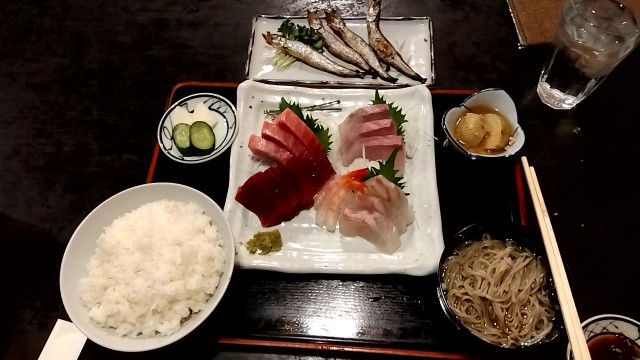 【アゼリア小原/手打ちうどん麦なわ】第40回 鯛刺身サービス「刺身お造り4点盛り(まぐろ・かんぱち・甘海老・鯛)」+20年以上ぶりに食べた「ししゃも」 ★2024/1/18(木)18:22 2024/01/18