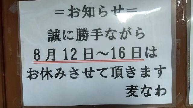 【アゼリア小原/手打ちうどん麦なわ】第97回 お盆スケジュール ★2024/8/8(木)17:54 2024/08/08