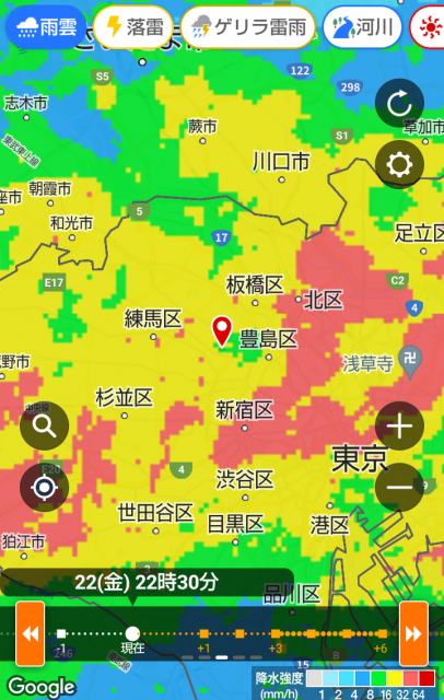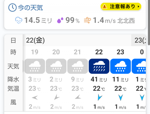 天候は、帰宅すると、雷雨になり土砂降りだ!