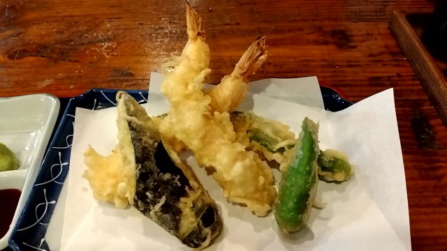 ナス1、青唐辛子、海老天、かぼちゃ各2お刺身