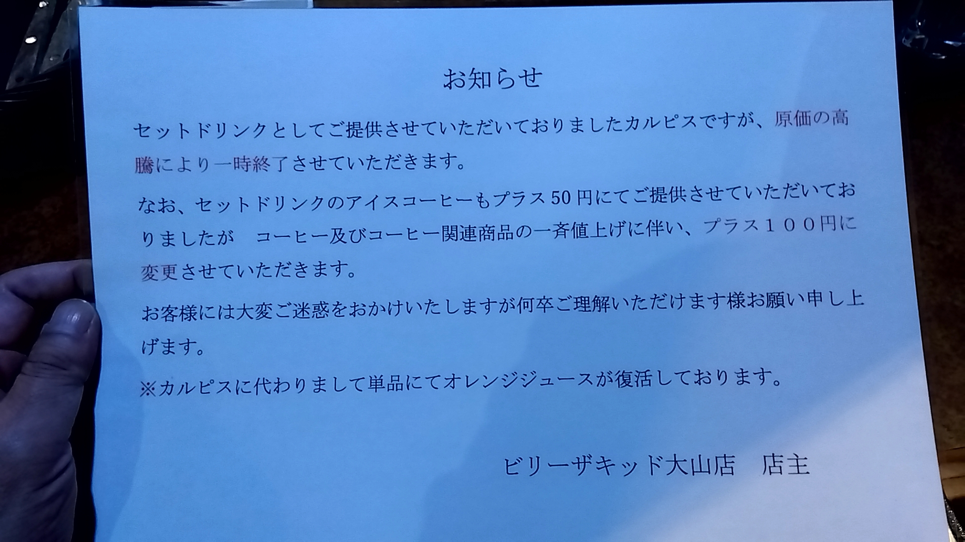 物価高の影響でカルピスなどの提供取りやめ!