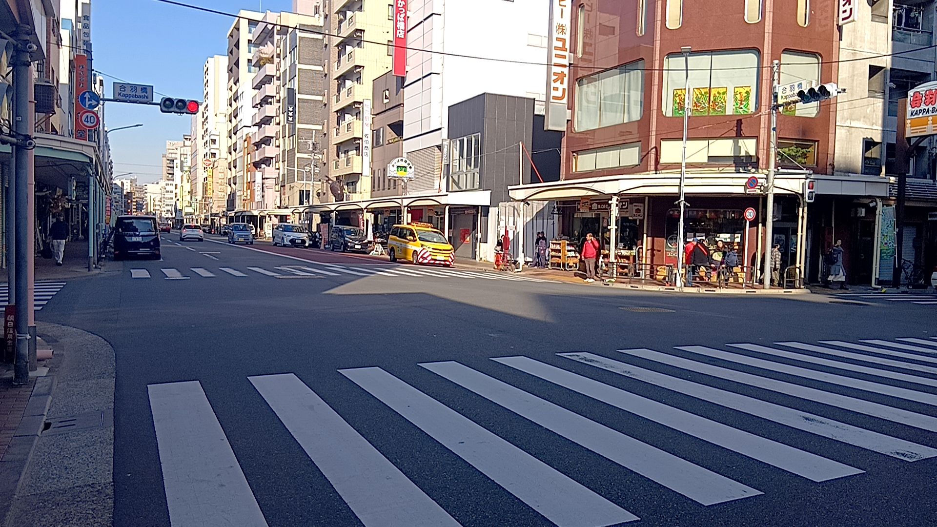 新堀通り(かっぱ橋道具街通り)と本通りの交差点