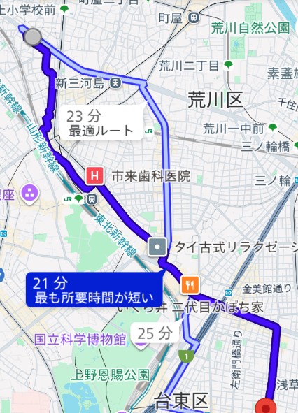 浅草から自宅までの自転車迂回ルート