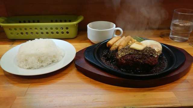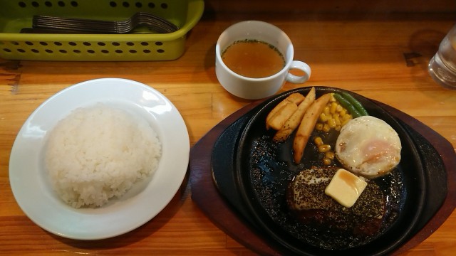 ペッパーハンバーグ・チーズオン(ライス・スープセット) 1000円