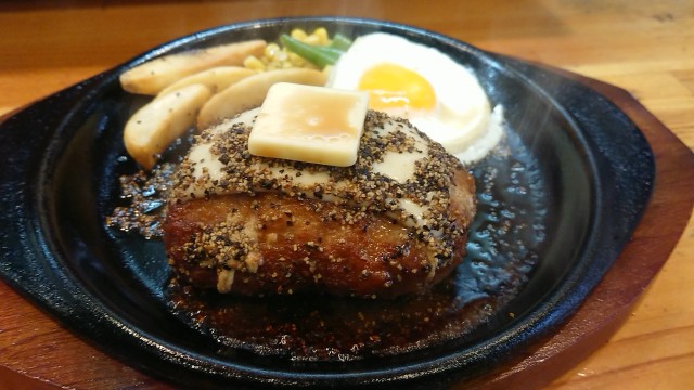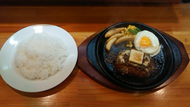 ペッパーハンバーグ・チーズオン(ライス・スープセット) 1000円