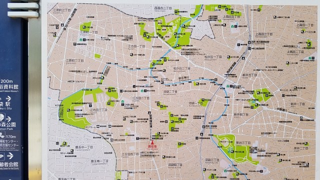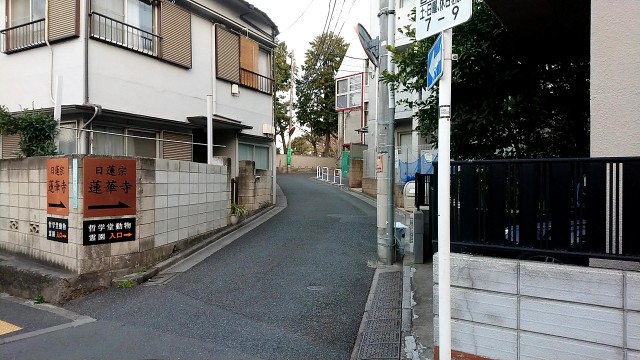 鎌倉街道中道は哲学堂の中を抜けて蓮華寺・野方配水塔(中野区立みずのとう公園)の前の道を通過する。