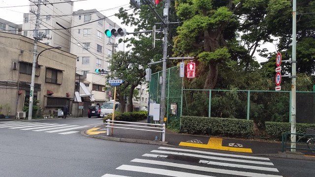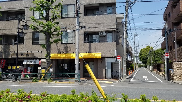 違法駐車している東京無線のタクシーが邪魔で、正面から撮影できず、中心を外しています。