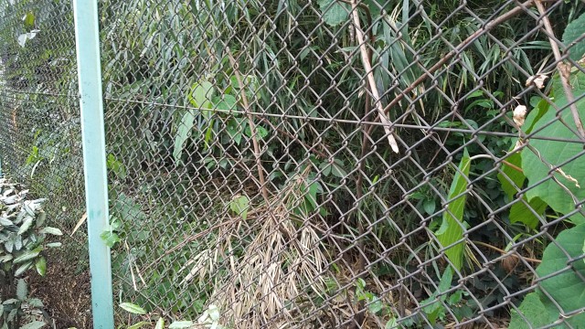 道と豊島塚があった江古田二丁目公園(江古田2-21)側には段差があって、公園側は低くなっています。