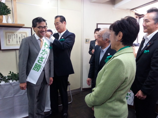 写真は、若狭候補、7人の侍豊島メンバー5人のうち4人、そして小池知事。