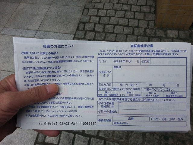 理由は10/23投開票東京10区補選期日前投票のため。