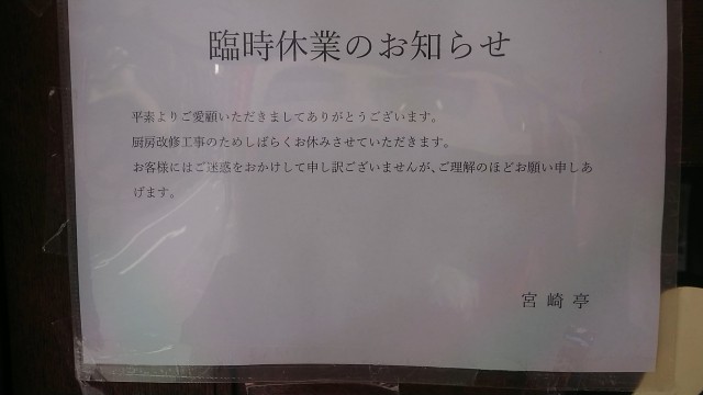 休業期間の告知がない宮崎亭臨時休業