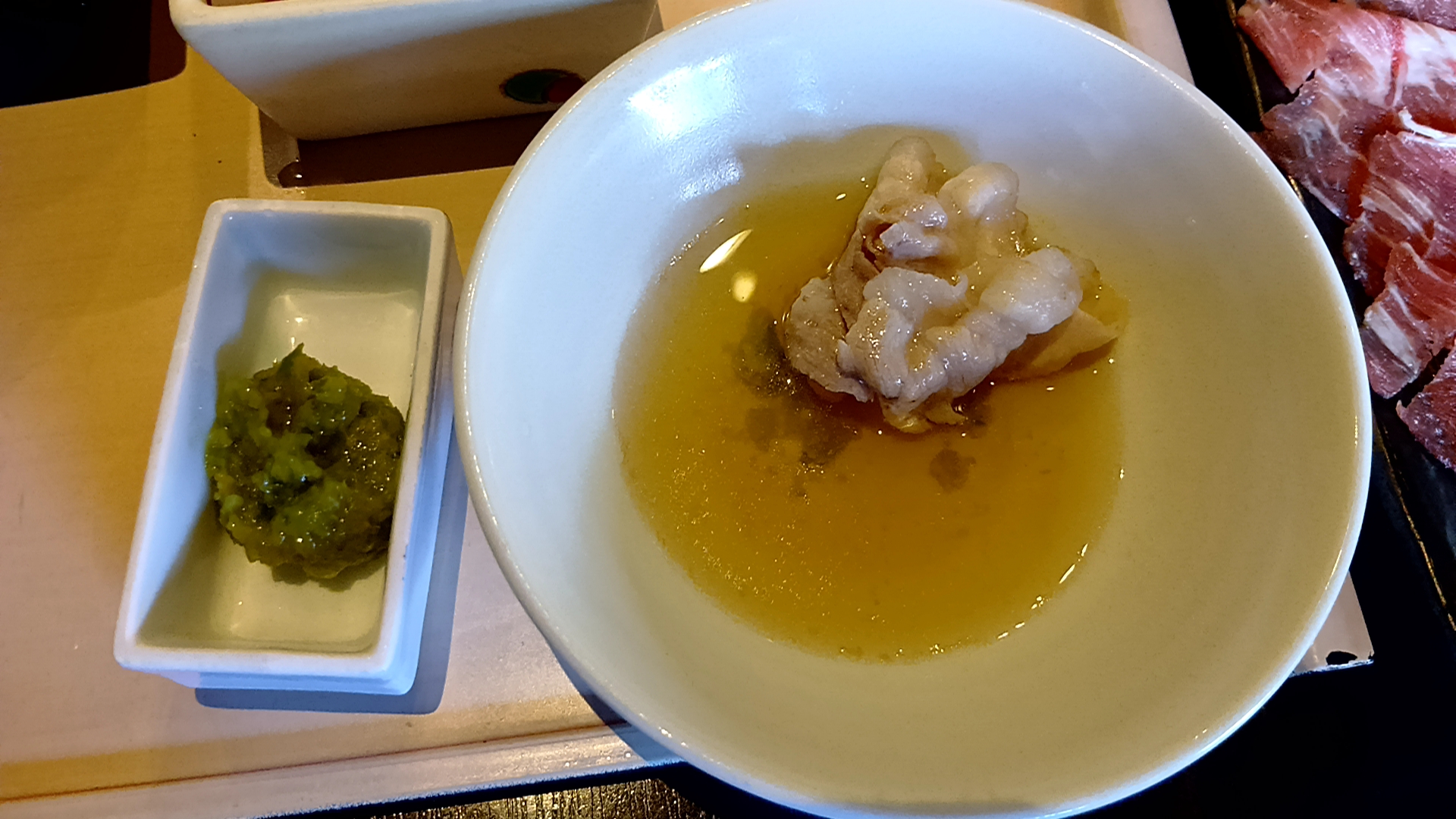 つゆだしを取皿にとって、柚子胡椒を入れると、病みつきになりそうな程の旨味が広がる!