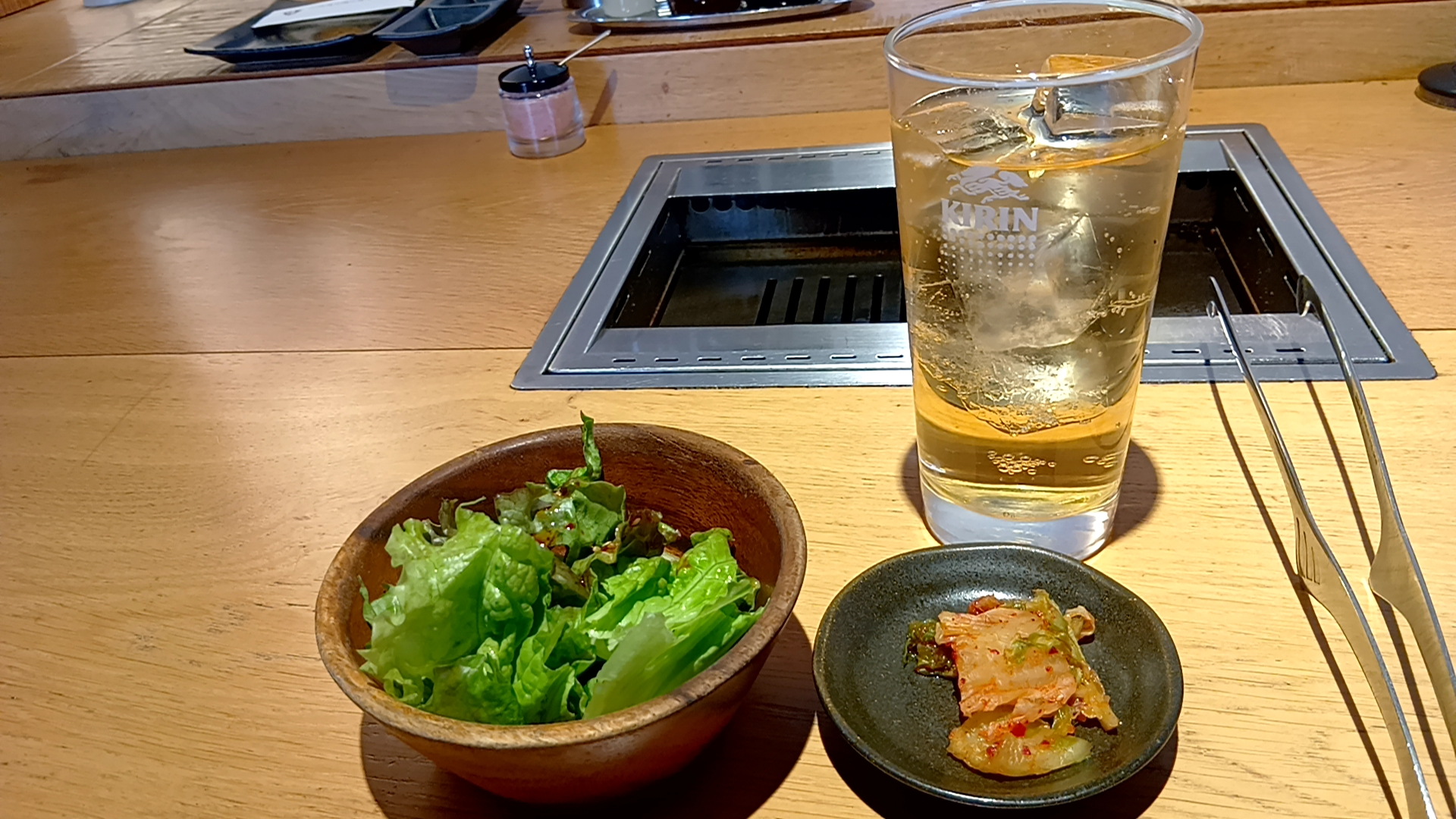 ライス(大盛サービス)・サラダ・スープ・キムチ・ドリンク(ジンジャエール)付