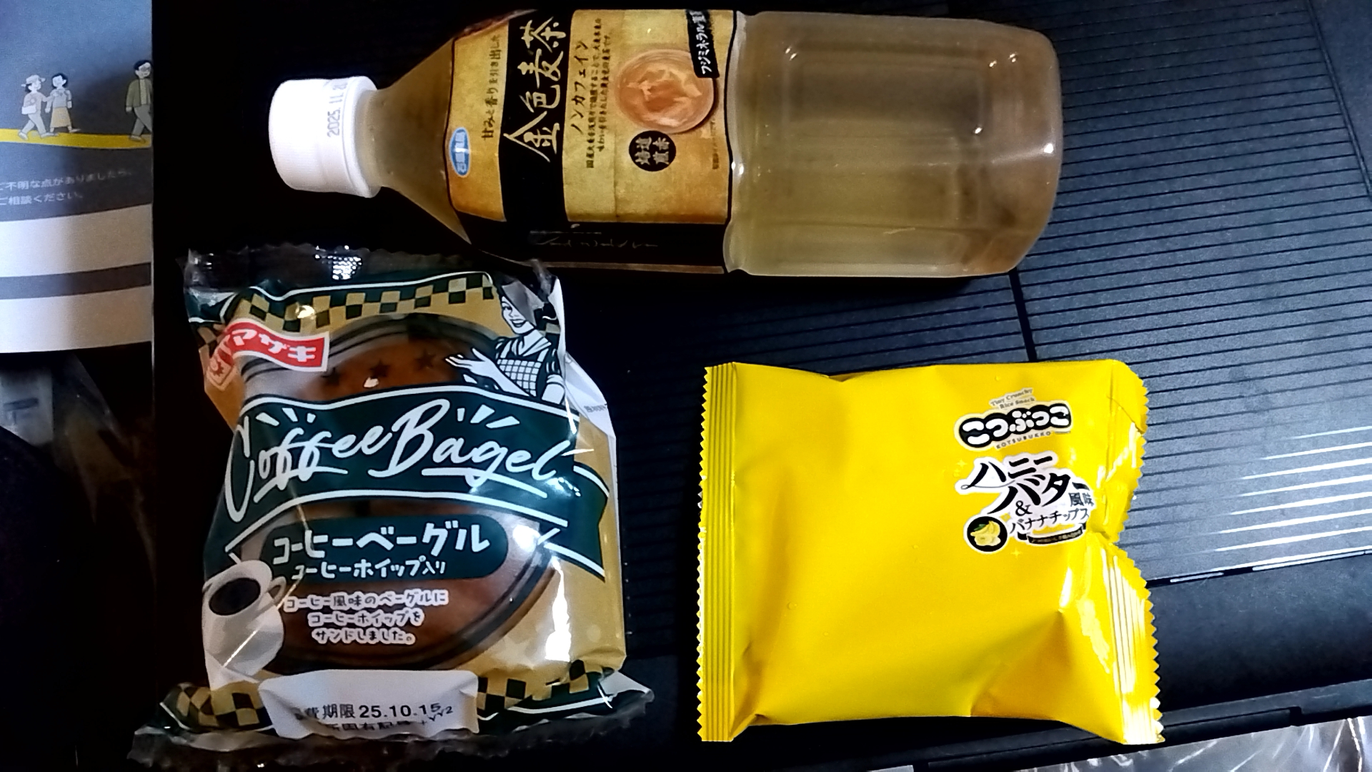 ④手土産サービス(コーヒーベーグル・おつまみこつぶっこ・金色麦茶)