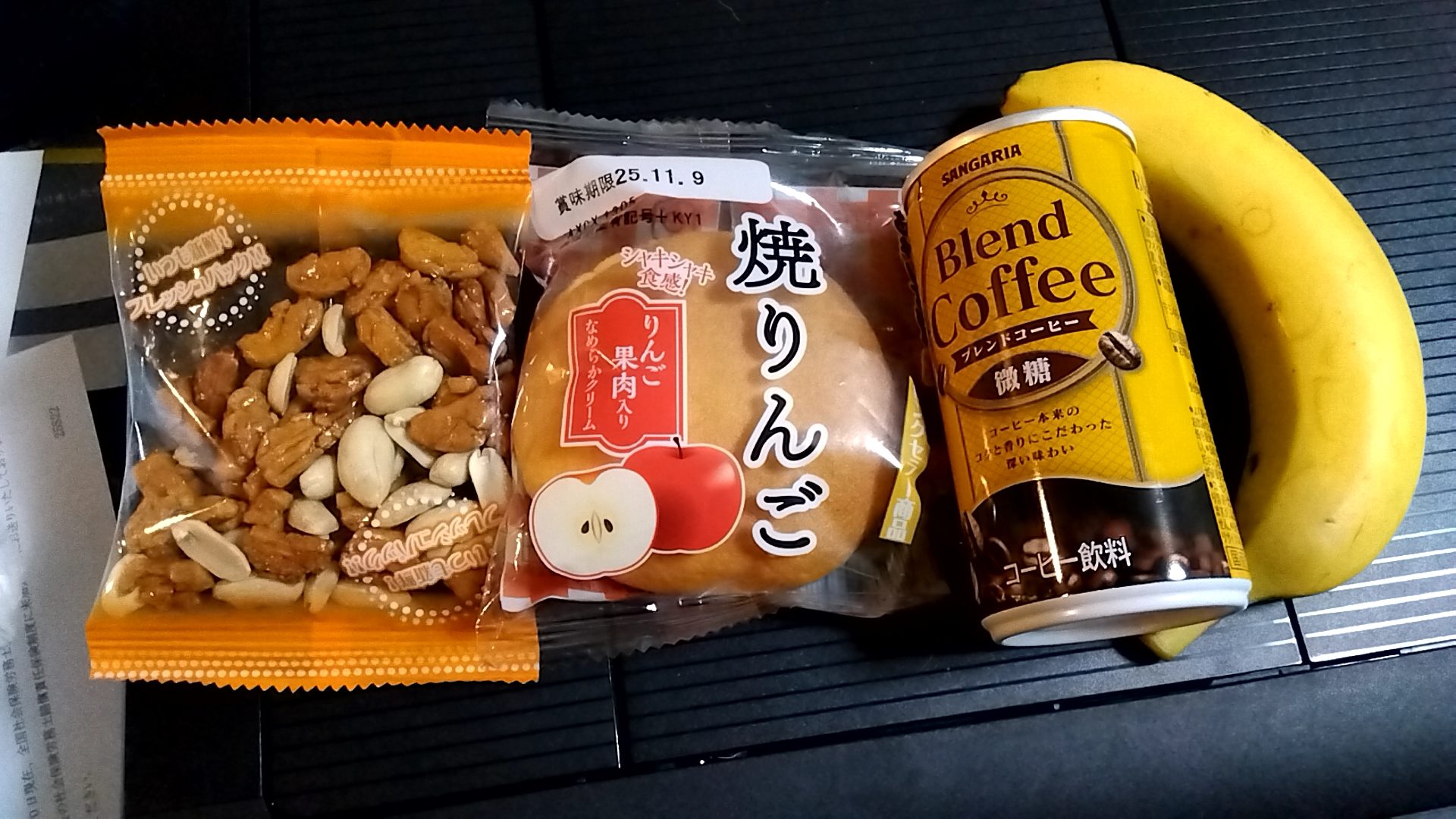 ③手土産サービス(焼りんご・バナナ・つまみ・缶コーヒー)
