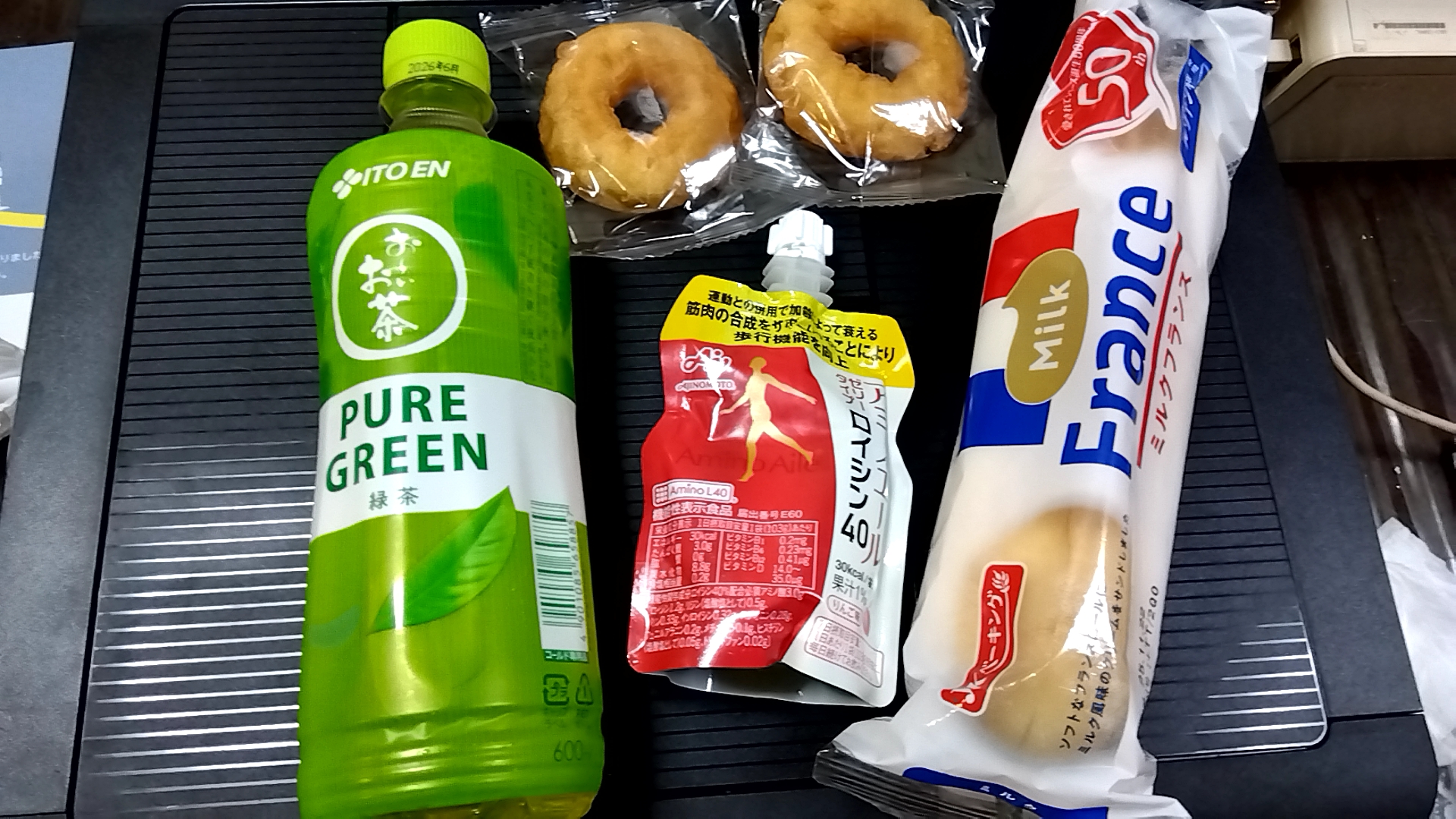 ③手土産サービス(お~いお茶・ミルクフランス・ドーナツ2つ・味の素アミノエールロイシン40)