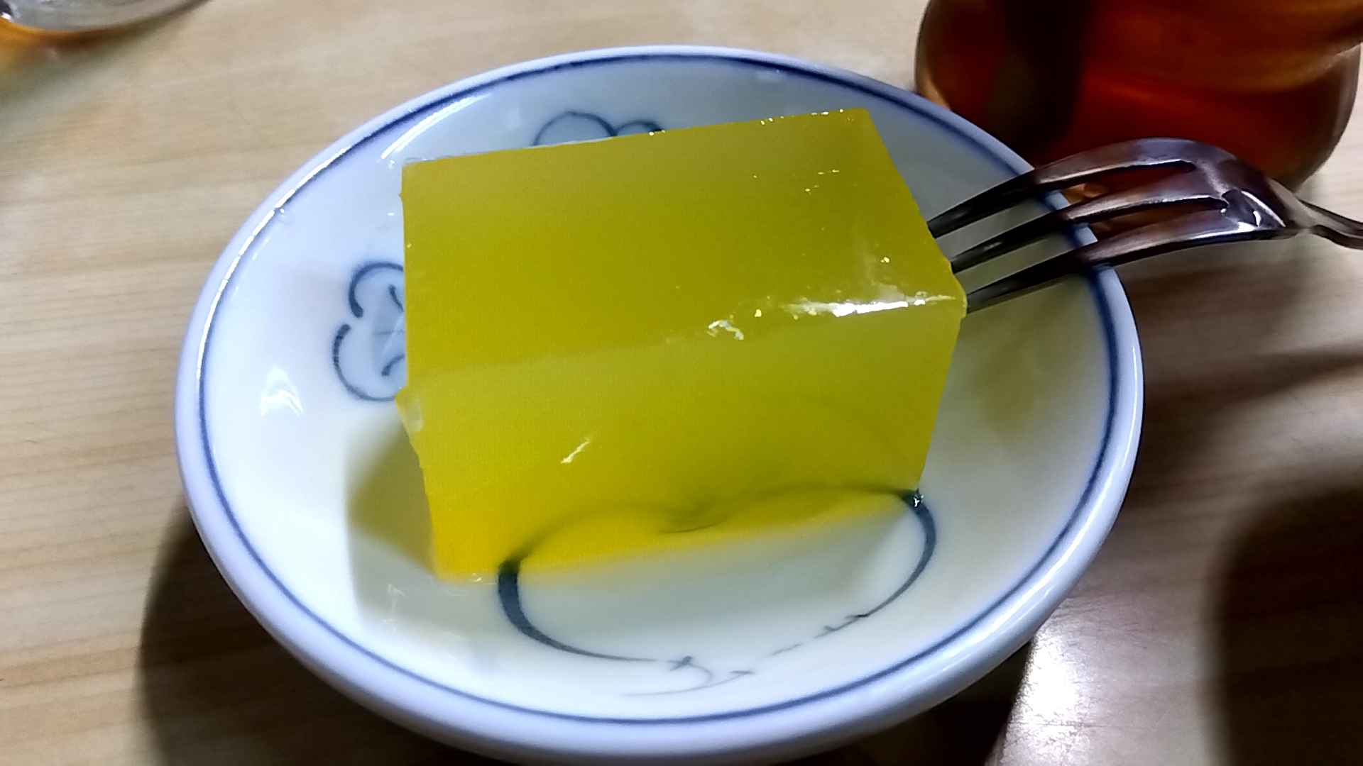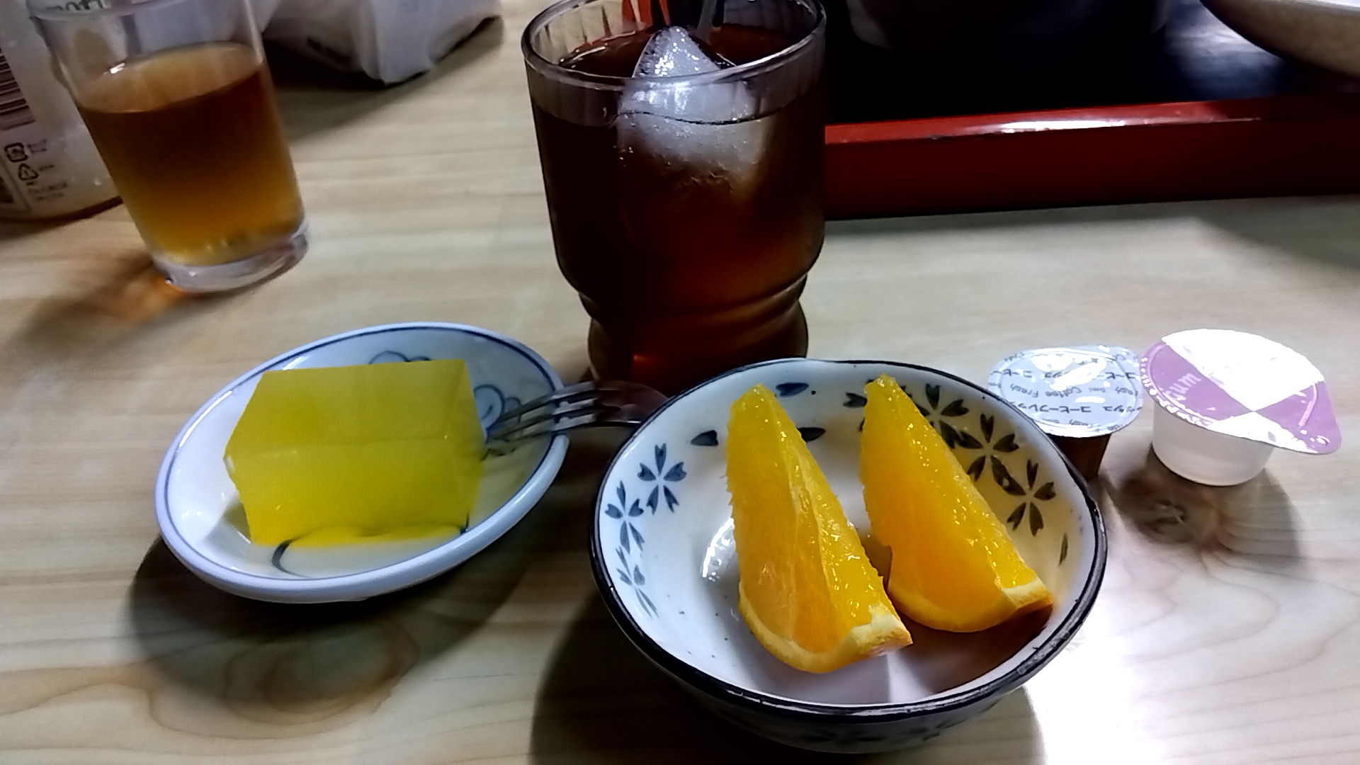 ②喫茶店サービス(オレンジ&マンゴー寒天ゼリー・みかん・冷珈)