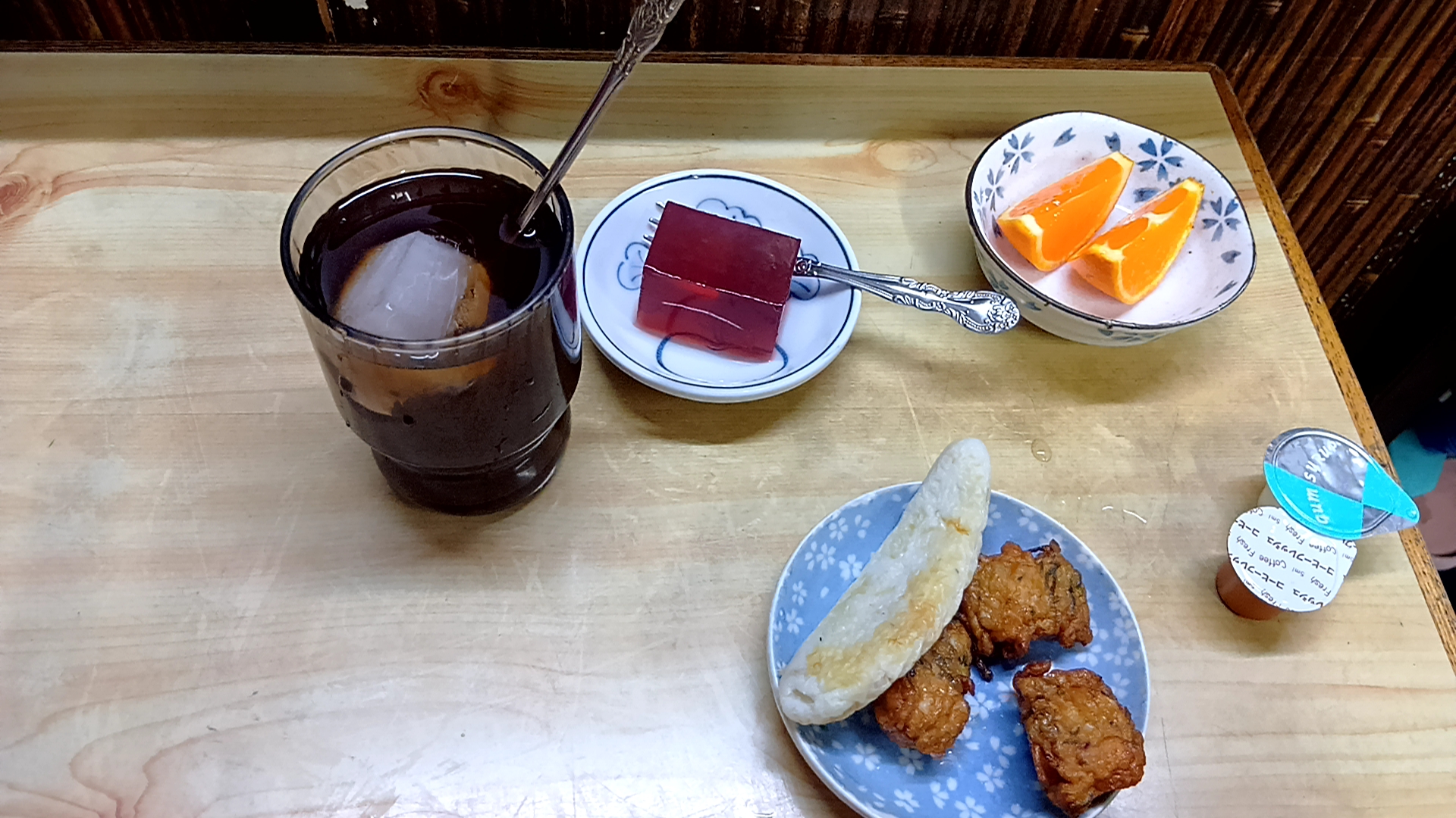 ③喫茶店サービス(寒天ゼリー・みかん・冷珈)