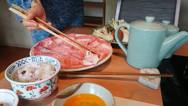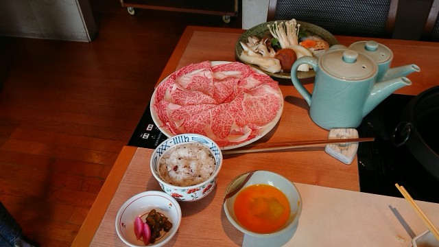 【木曽路 善福寺店】第11回 ランチコース”上すきやき” 静岡県産和牛霜降肉2人前(240g)←上落合店発行「特別追加肉券(無料サービス券)利用 2022/07/05