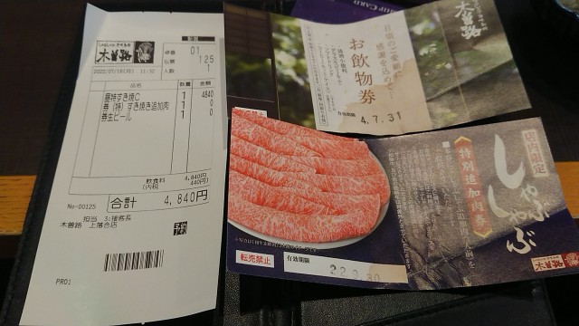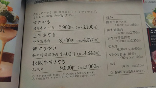 【木曽路 上落合店】第12回 栃木県産和牛特選霜降肉「特すきやきコース 4840円」 2022/07/18