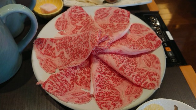 いつも普通(国産牛)又は上(和牛霜降肉)を頼んできたが、今日は特(和牛特選霜降肉)にした。