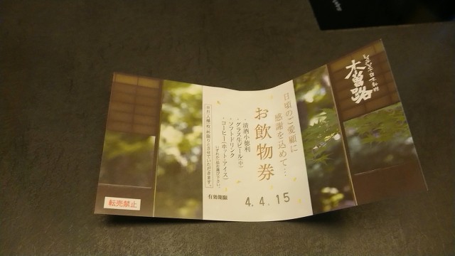 まずはドリンクサービス券を使って、止めているお酒を飲む!