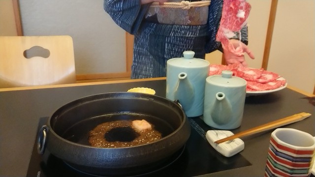 食事時間が長いので、鍋が煮詰まってしまい、割下で濃くなり過ぎた。