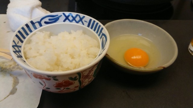 白米おかわり2杯目(大盛合計3杯目)と生たまご交換
