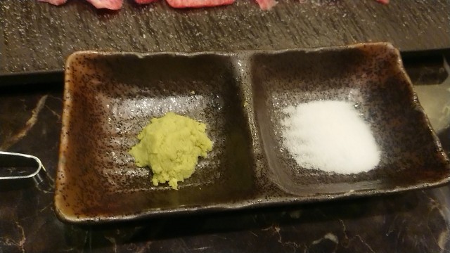 タレではなく、わさびと塩。