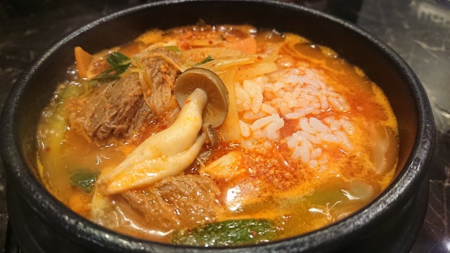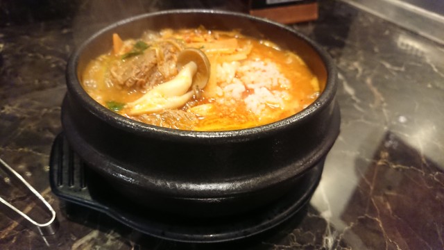 〆はグツグツ鍋のカルビクッパ