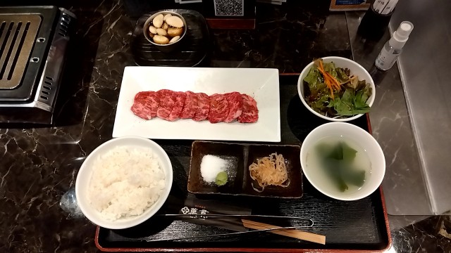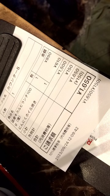 【神戸牛焼肉萬貫】第51回 気温25℃今年度最初のインディアンサマーとなった日曜日のお昼は”怪我の功名”でいつもより500円安「国産牛カルビランチ&にんにくホイル焼き 合計1650円」 ★2023/9/24(日)12:40 2023/09/24