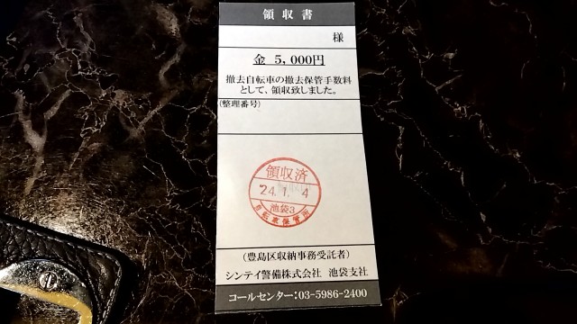1時間強で戻ってきたが、自転車が撤去されていた!