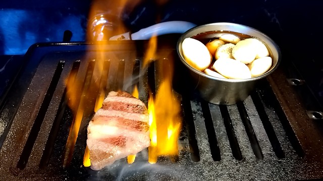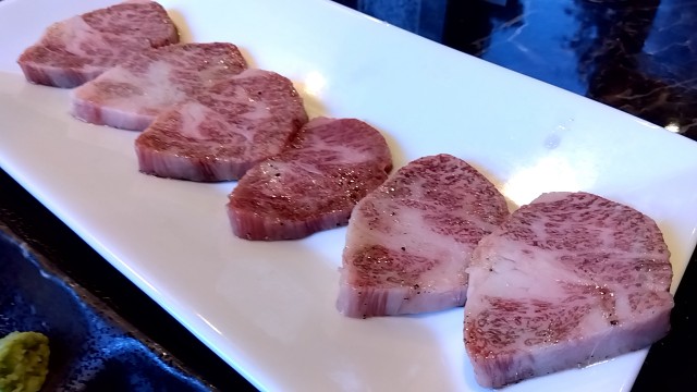 特選上カルビとにんにくのコンビネーション。