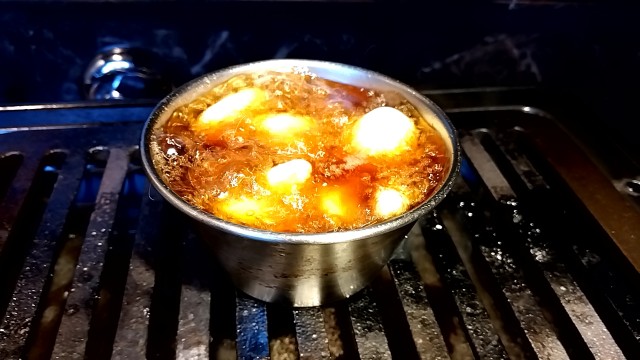 にんにくが弾けんばかりグツグツ沸騰している。