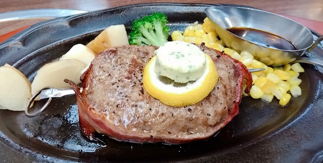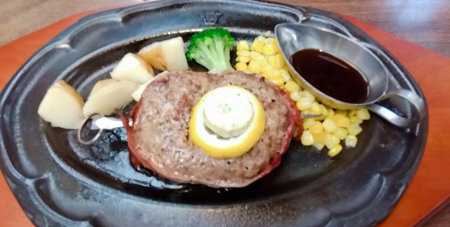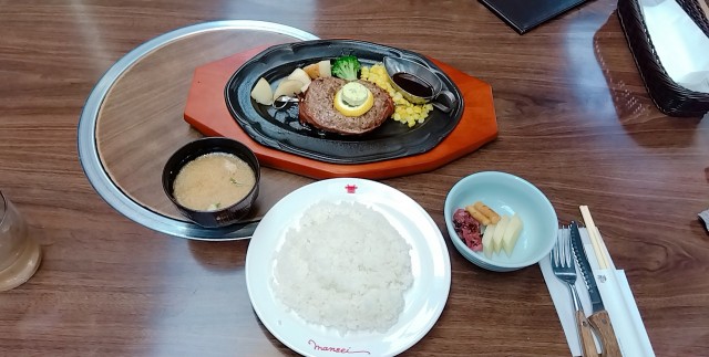 夕方になって空腹になり、久しぶりにつけ麺道たけしに行こうと決めていたが、土壇場になって万世粗挽きハンバーグに心変わりした。