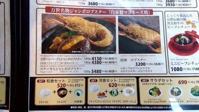 ①万世ハンバーグ180gとジャンボロブスター 4818円