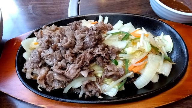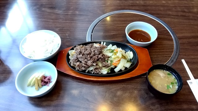 【肉の万世 環七豊玉店】第25回 ネクタイ姿の日に限って不織布エプロンを忘れてしまうヴァカ男(涙)「黒毛和牛鉄板焼М120g(からし醤油タレ) &和食セット」 ★2024/4/17(水)17:05 2024/04/17