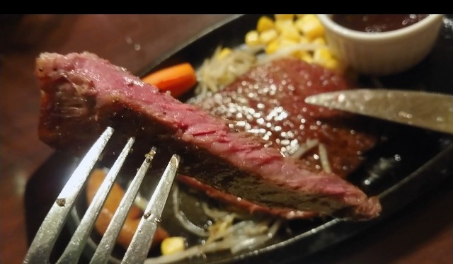 焼き加減を訊ねられ「オススメの焼き加減で」と言うと「ミディアムレアがいいです」