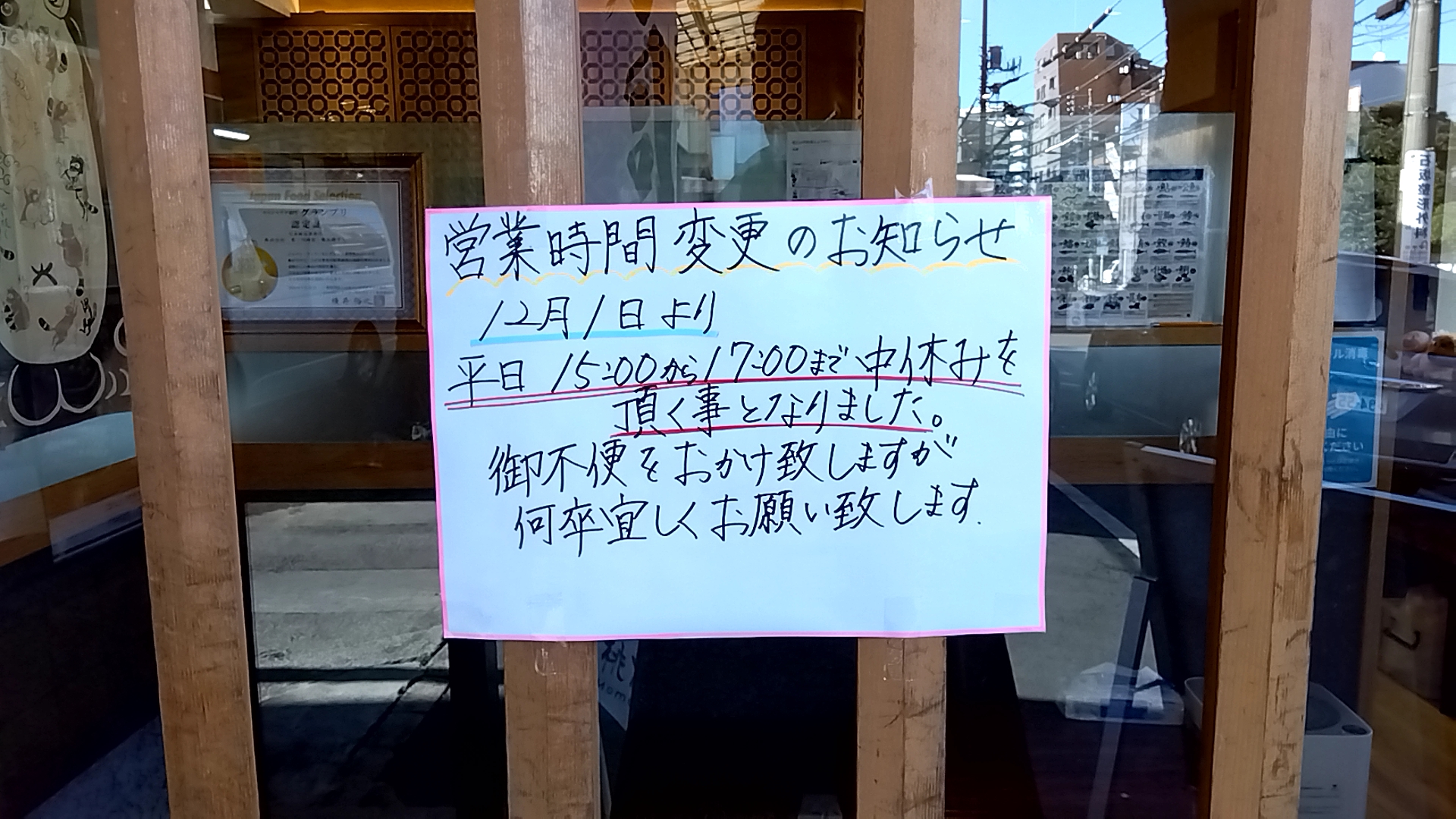 本日から客足が途絶える15:00〜17:00を中休みにするそうだ。