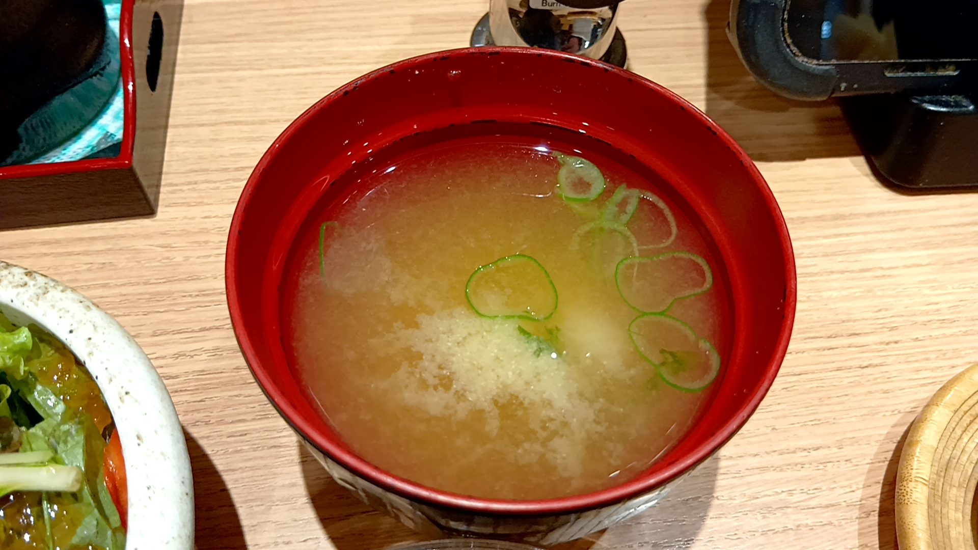 お椀というか、ネギしか入っていない味噌汁。