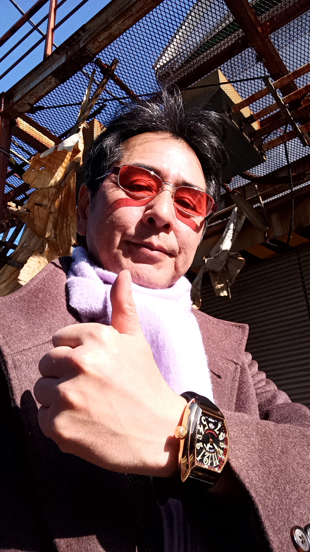 帰宅時には、イタリアンカラーとマフラーが暑くて邪魔になりました。