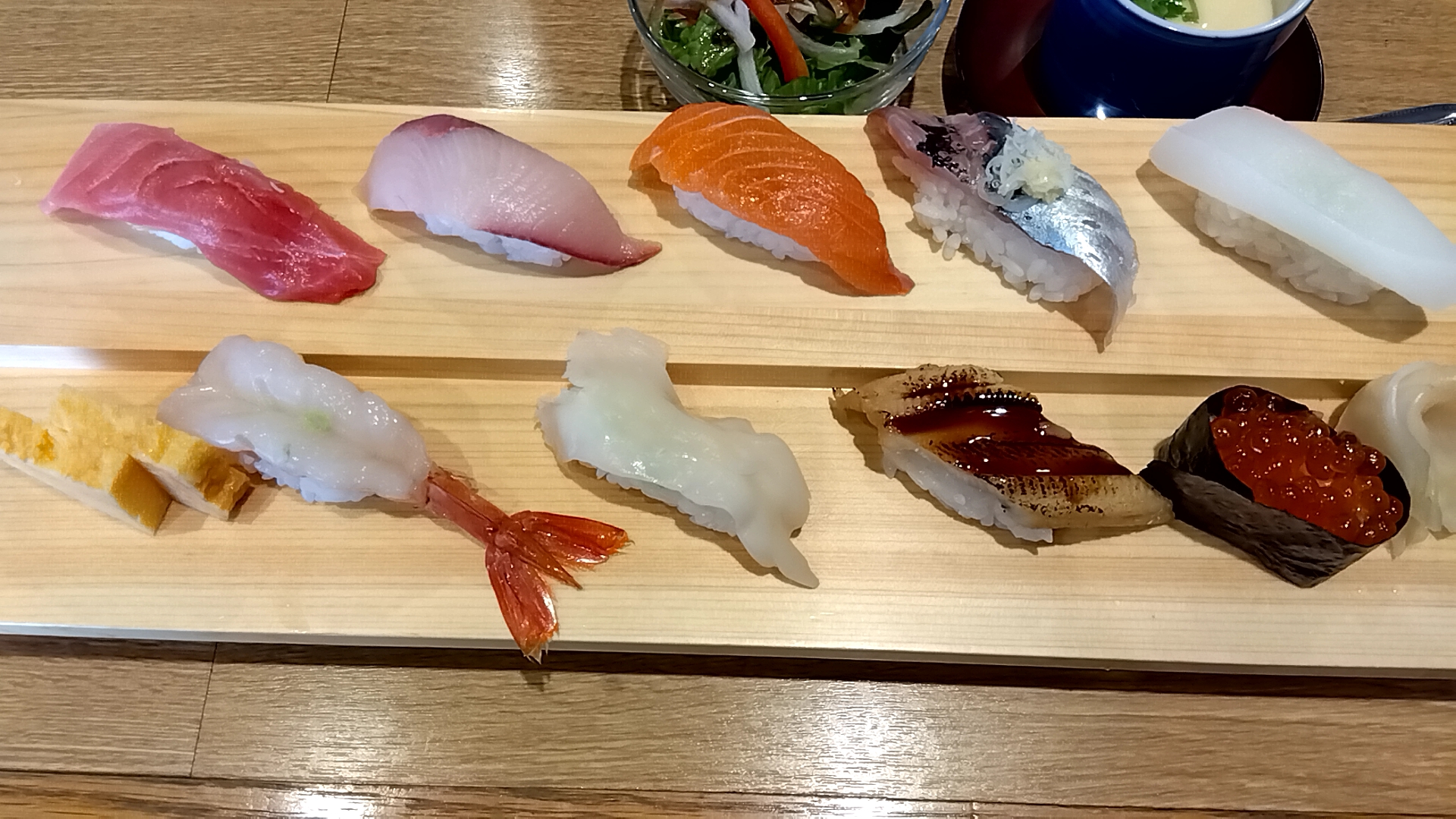 後列)中トロ・魬・サーモン・鯵・烏賊