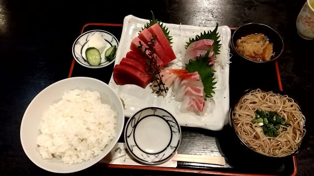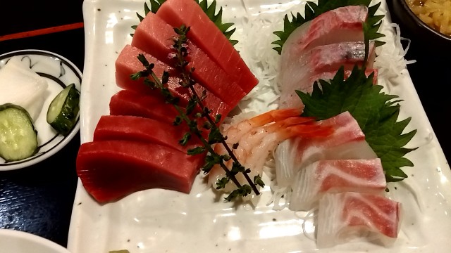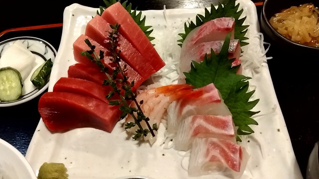 「まぐろ・かんぱち・甘えびのお刺身3点盛り定食」
