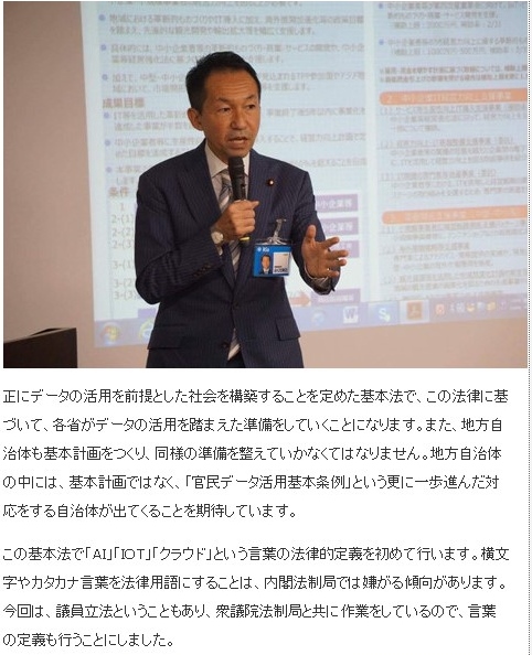 電子政府『官民データ活用基本法案』(福田峰之代議士ブログより引用あり) 2016/10/24