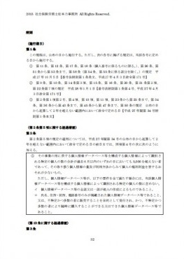 現在、参議院で審議中の改正個人情報保護法及びマイナンバー法に対応した個人情報保護規程(個人情報・特定個人情報一本化、法人のうち個人番号利用事務実施者・個人番号利用事務の委託を受ける者・金融機関・認定団体を除く)全33ページが完成しました!(本則68条、附則4条。本則には委員会の監督機能と罰則も取り入れている)