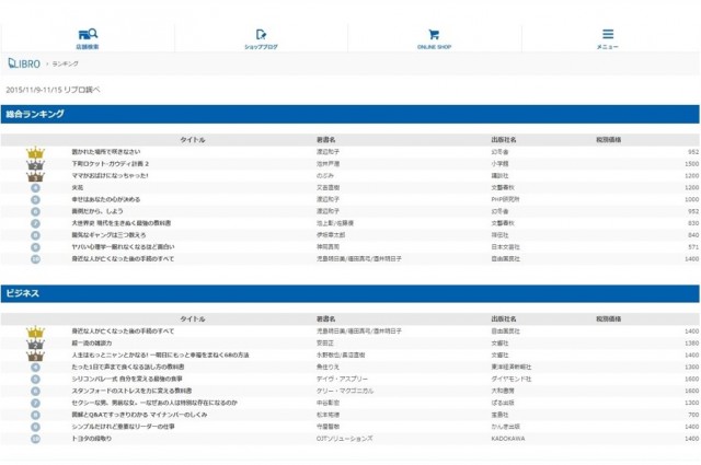 2015/11/9-11/15 リブロ調べ ビジネス部門第8位です。