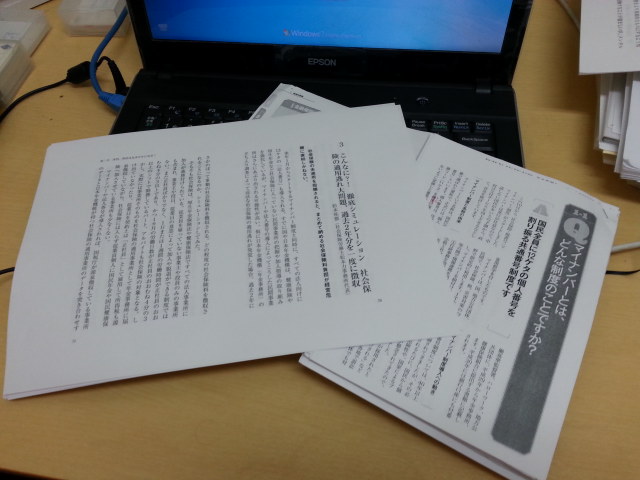 【宝島社『図解とQAですっきりわかるマイナンバーのしくみ』】【毎日新聞出版『入門 マイナンバーの落とし穴ー日本一わかりやすい解説』】宝島社・毎日新聞出版の原稿の校正 2015/09/27